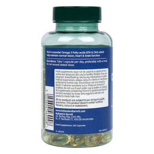 Healthy Heart Function: Holland & Barrett Cod Liver Oil is enriched with essential omega 3 fatty acids, EPA and DHA, which help to maintain normal heart function. Along with Vitamins A and D, these capsules will provide your body with vital nutrients necessary for a healthy heart.