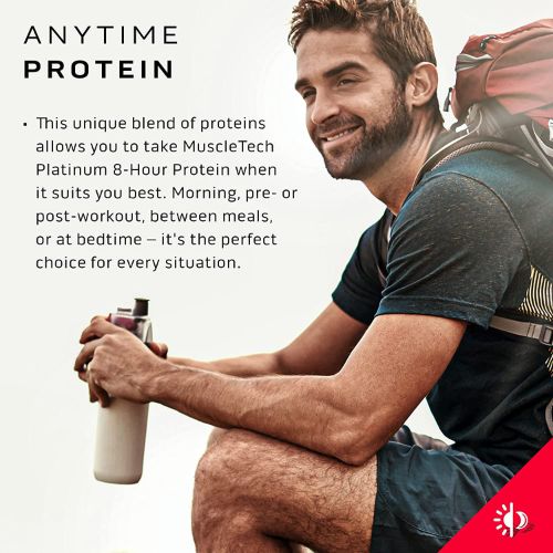 Muscletech Platinum 8-hour Protein is a unique and powerful protein supplement for athletes and bodybuilders. Platinum 8-hour Protein contains 26g of whey protein blend and 5.6g of BCAAs, this product helps to support muscle growth and recovery after tough workouts. Muscletech Platinum 8-hour Protein contains a special blend of fast-acting whey protein, slow-digesting micellar casein, and egg albumen to provide 8 hours of sustained amino acid delivery. Platinum 8-hour Protein formula is designed to reduce muscle breakdown post-workout and help build lean muscle more quickly. Muscletech Platinum 8-hour Protein is a great choice for anyone looking to get serious about building muscle.