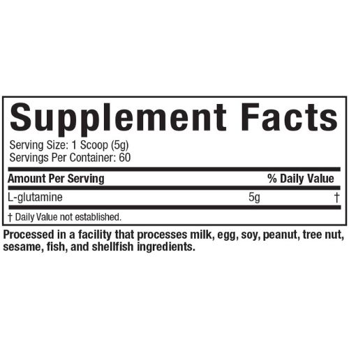 Nutrition Facts of Platinum 100% Pure L Glutamine Powder