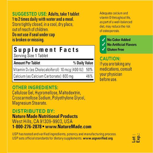 - Supports Bone Health: Nature Made Calcium 600 mg Tablets provide essential calcium to help support strong bones and teeth, especially important for individuals looking to maintain bone health as they age.