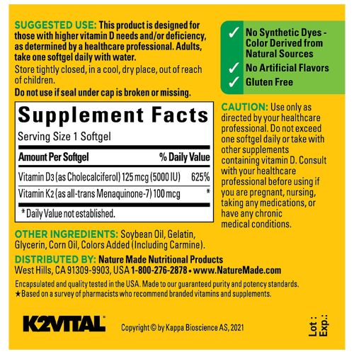 - Nature Made Vitamin D with K2 supplements are quality you can trust.