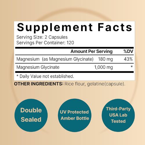Magnesium Glycinate Supplement 1,000mg | 500mg Per Capsule, 240 Pills | 100% Chelated & Purified – Non-GMO & Gluten Free