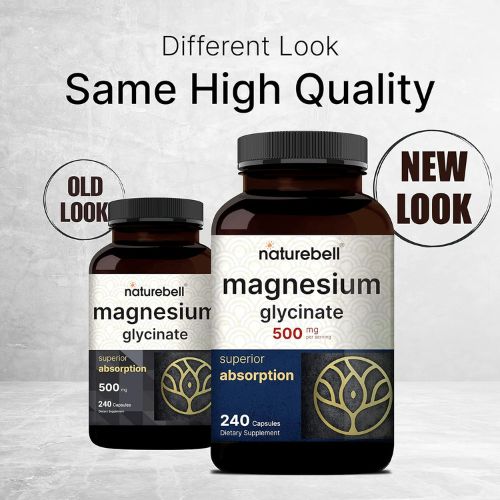 Naturebell Magnesium Glycinate Capsules 500mg | 240 Count, 100% Chelated & Purified, 3rd Party Tested, Non-GMO & Gluten Free