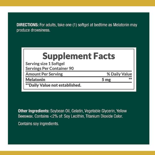 Nature’s Bounty, Melatonin 5 mg, 90 Tablets sleep health supplement contains a clinically studied ingredient that can help promote relaxation and sleep. Plus, it comes in a rapid-release soft gel for easy absorption. You can trust Nature’s Bounty Melatonin 5 mg to deliver quality products backed by a satisfaction guarantee.
