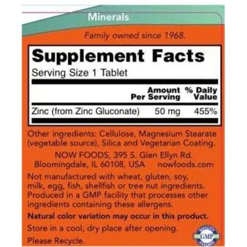 - Cognitive Function: Adequate levels of zinc are important for optimal brain function and cognitive performance. Enhance mental clarity, focus, and memory by supplementing with NOW Foods Zinc 50 mg tablets to support your brain health.