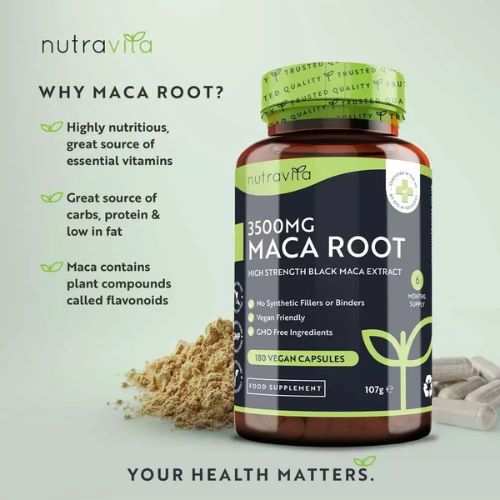 • Libido Enhancement: Nutravita Maca Root 3500mg capsules have been shown to promote sexual health and libido in both men and women, providing a natural way to enhance intimacy and vitality.