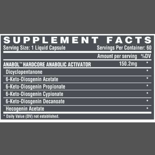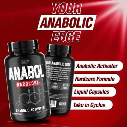 Nutrex Research, Anabol Hardcore, is a dietary supplement that helps increase muscle mass and physical performance. It contains anabolic compounds that stimulate the muscle cells to increase protein synthesis and promote nitrogen retention, resulting in increased muscle size and strength. The capsules are easy to swallow and have no aftertaste. They are also gluten-free and made with non-GMO ingredients.