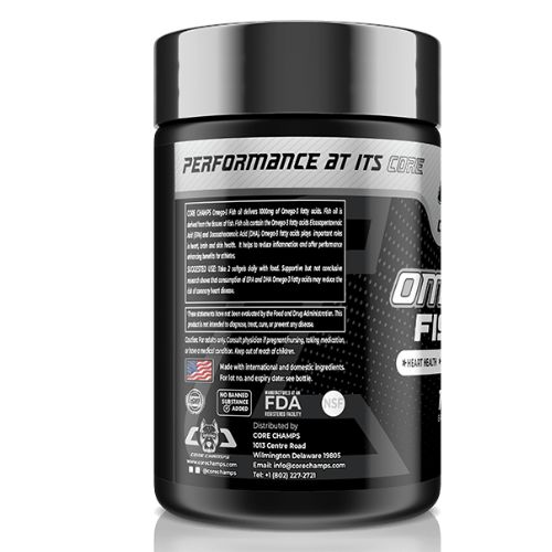 Core Champs Omega-3 Fish Oil 1000mg is an ideal supplement for those looking to increase their daily intake of fish oil. Core Champs, omega 3 capsule contains all the essential nutrients needed to maintain a healthy lifestyle. Core Champs, omega 3 capsule provides a balanced dose of EPA and DHA, which are both essential fatty acids that can help support joint health, cardiovascular health, and cognitive function. Additionally, Core Champs Omega-3 Fish Oil 1000mg provides an antioxidant boost that helps protect the body from free-radical damage. Core Champs, omega 3 120 softgels per bottle, this product offers great value for money, ensuring that customers get the most out of their purchase. Core Champs Omega-3 Fish Oil 1000mg is an excellent choice for anyone looking to add some extra nutrition to their daily routine.