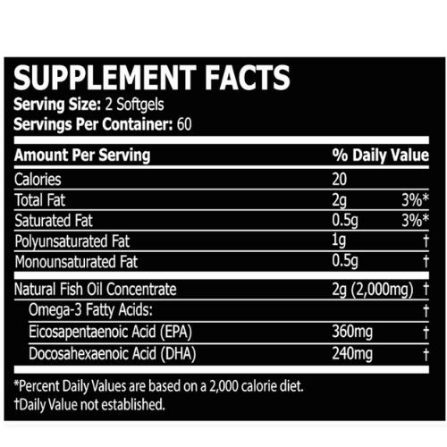 Take 2 softgels daily with food. Supportive but not conclusive research shows that consumption of EPA and DHA Omega-3 fatty acids may reduce the risk of coronary heart disease.