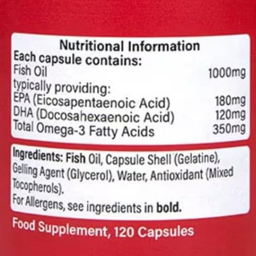 Holland & Barrett’s Omega 3 Fish Oil Concentrate 1000mg capsules contain contaminant-free, pure fish oil to provide adequate quantities of essential fatty acids. Essential fatty acids need to be ingested from food as they are not naturally produced by the human body. EPA and DHA are Essential Omega-3 fatty acids which are commonly found in fish oils.