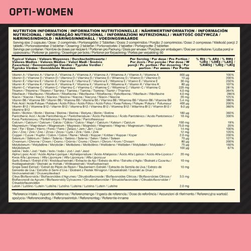 Opti-Women Multivitamin is a product by Optimum Nutrition. It is specially designed for women. This multivitamin provides essential nutrients. These nutrients help support the overall health of women. The multivitamin contains vitamins, minerals, and other nutrients. These nutrients help support bone health, immune function, and more.