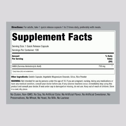 Piping Rock Gaba 750Mg Capsules are dietary supplements. They contain 750 milligrams of Gaba. These capsules help support your mental health.