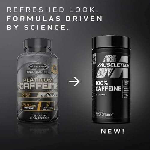 - Muscletech Platinum 100% Caffeine is a pre-workout supplement containing caffeine and other ingredients meant to help improve performance. Caffeine is known to help improve focus and energy levels, which can help you push through your workouts. The other elements in the supplement may also help improve performance, depending on your specific goals.
