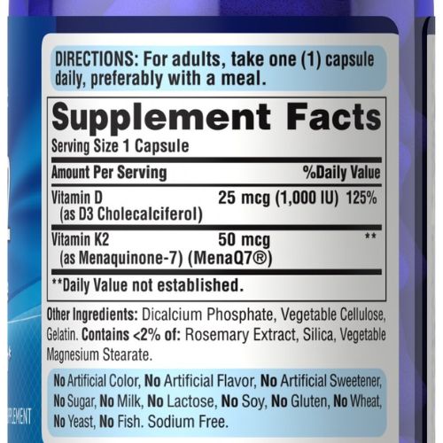 • Vitamin D3 and K2 for Stronger Bones and Teeth: Boost your bone health with Puritans Pride D3 and K2 capsules, which work synergistically to support calcium absorption and utilization in the body. Strengthen your bones and teeth to maintain optimal skeletal health.