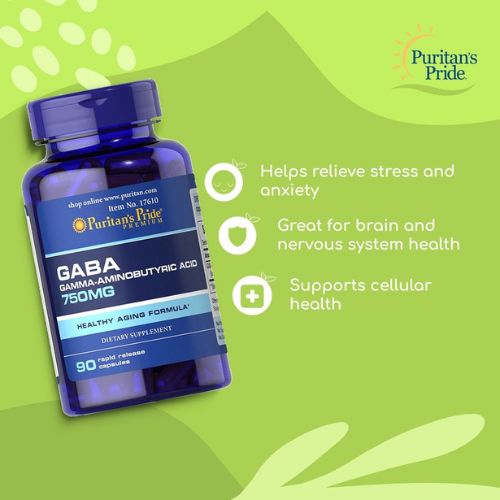 Puritans Pride GABA 750 mg 90 Capsules provide a natural way of calming the mind and body. With its powerful effects, GABA 750 mg is designed to quickly reduce stress and anxiety while promoting better sleep. The natural amino acid helps to regulate nerve cells, allowing for improved communication between different parts of the brain â GABA 750 mg Capsules improving overall mental clarity and focus. GABA is naturally produced in the body, you can be sure that you are getting an extra helping of what your brain needs most!