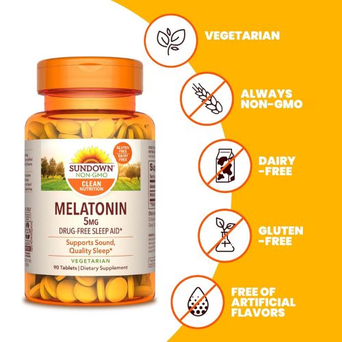 Sundown Melatonin 5mg helps promote a quiet sleep so you can awaken refreshed and revitalized. Nature’s Bounty Quick Dissolve Melatonin is a great choice if you experience occasional sleeplessness or jet lag, or if you want to improve your quality of rest. Melatonin helps you fall asleep faster and stay asleep longer