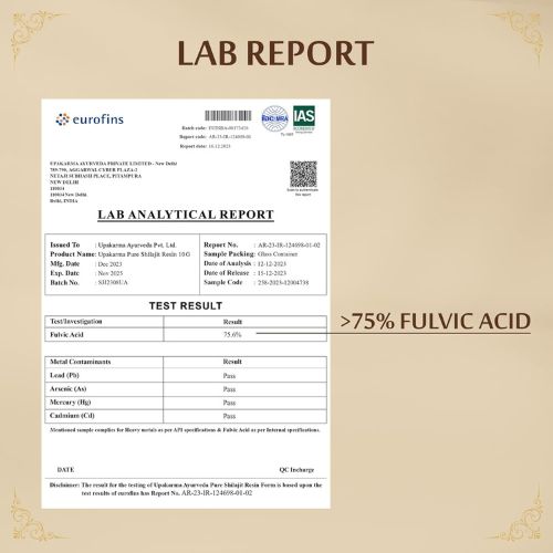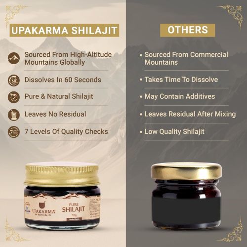 • Authentic and Natural Ingredients: UPAKARMA Ayurveda is committed to providing pure and natural Shilajit Resin, used since ancient times, ensuring the highest quality product for its consumers.