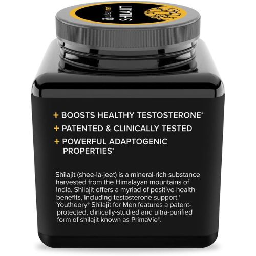 Youtheory Men Shilajit/Shilajeet capsules feature a patent-protected, clinically studied and ultra-purified form of shilajit known as PrimaVie. Shilajit is a mineral-rich substance harvested from the Himalayan mountains of India. Shilajit offers a myriad of positive health benefits, including testosterone support.